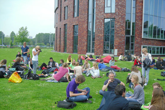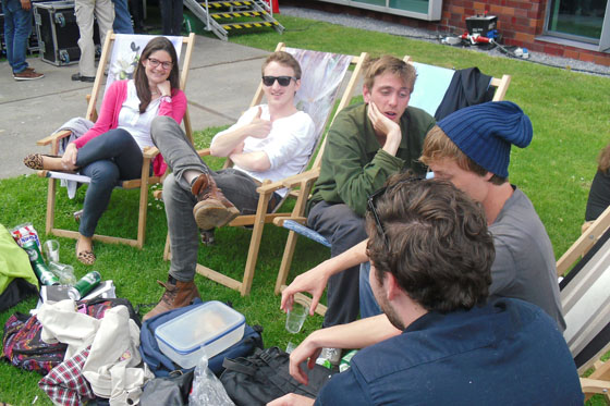 Het bier vloeit rijkelijk, de geur van schroeiend vlees vult de neusgaten en een algehele lome vrolijkheid maakt zich meester van het gebied rond campuscafé The Basket.