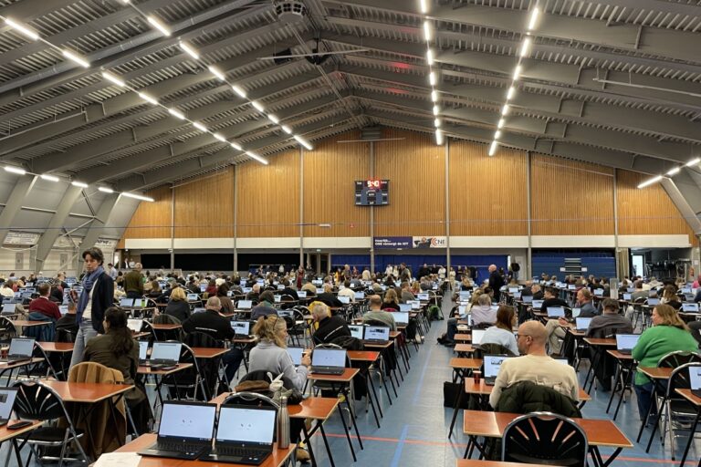 Een paar honderd VU-medewerkers reisden woensdagochtend vrijwillig af naar tentamenlocatie Emergohal in Amstelveen om een toetsmoment na te bootsen en het netwerk te testen.