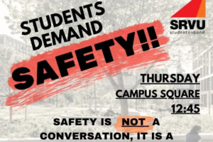 Met als slogan ‘Take Back Our Campus’ organiseert studentenvakbond SRVU op donderdag 12 februari een protestactie tegen de sociale onveiligheid op de VU-campus. SRVU vindt dat de VU faalt in het handhaven van de sociale veiligheid, schrijft de bond op Instagram.