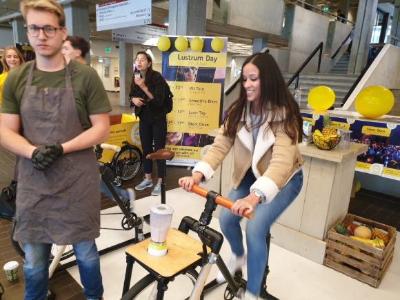 Zo is er een silent disco in de Universiteitsbibliotheek en kun je lasertaggen op het campusplein. In de grote hal van het VU-hoofdgebouw trakteert Aureus op smoothies, die je zelf moet mixen door keihard te fietsen.