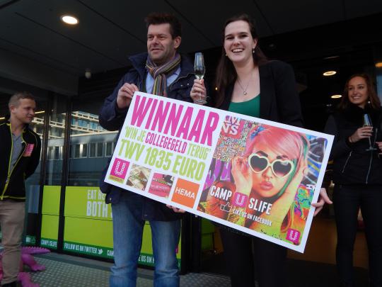 Op de VU-campus waren vijf studenten uitgenodigd. Van hen won student biomedische wetenschappen Wesley van den Busken (19) een tablet. “Ook leuk”, aldus Van den Busken.