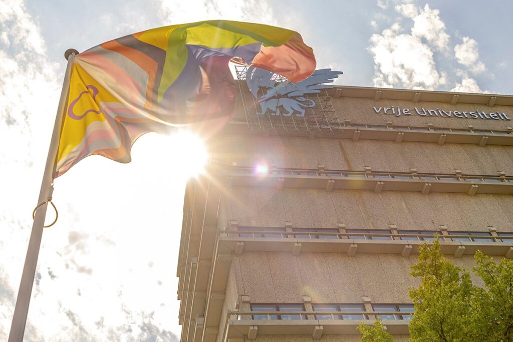Echt een boosmakertje, zo’n vlag die de inclusiviteit van de VU symboliseert. De VU wil ermee zeggen dat iedereen zich aan de VU thuis moet voelen: lhbti+’ers, mensen van kleur, die met een migratieachtergrond, joden, moslims, christenen, hindoes en noem maar op. Hetero’s en homo’s, binairen en non-binairen. Niet iedereen is het daarmee eens. De progress-vlag werd vorig jaar gestolen en vervangen door een VOC-vlag, kennelijk uit verlangen naar de tijd dat Nederland een koloniale grootmacht was die lhbti+’ers met een steen om hun nek gewoon de plomp ingooide.