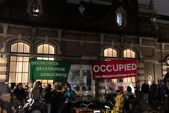 “I hope that is something that the board of VU Amsterdam wouldn’t do. I wouldn’t like to see an occupation here and hope there won’t be a need for one. I would like to come to an agreement with the board without having to go to such lengths. There is a petition at the moment to call for the university to cut all ties with fossil fuel companies.