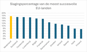 Bijna achttien procent van de aanvragen uit Nederland wordt gehonoreerd. Dat is het hoogste percentage binnen de EU. Met een succesvolle aanvraag kan een individuele wetenschapper 1,5 tot 2,5 miljoen euro onderzoeksgeld krijgen.