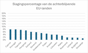 De achterhoede bestaat uit vijftien EU-landen. Samen vertegenwoordigen ze ongeveer een kwart van de EU-bevolking. Deze landen doen het inmiddels iets beter, meldt de ERC in een nieuw rapport, maar ze lopen nog altijd achter op de rest.