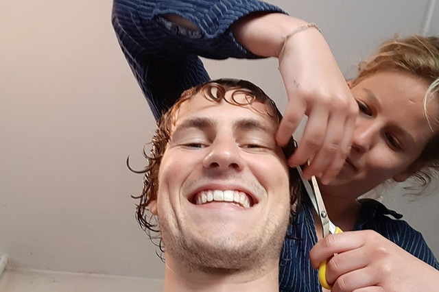 “Mijn haar begon echt te lang te worden. Ik wilde graag dat mijn vriendin het knipte, maar zij twijfelde. Toen zei ik: ‘Als je het over een week nog niet hebt geknipt, doe ik het zelf.’ Ik denk dat ze me niet vertrouwde met een schaar, want toen was het snel gedaan.”