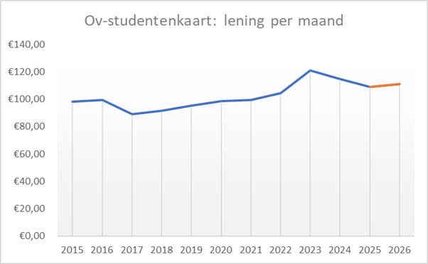 Volgend jaar lenen studenten 110,95 euro per maand voor hun ov-kaart, net iets meer dan nu. Dit merken ze als ze een poosje in het buitenland studeren of als ze geen diploma behalen.
