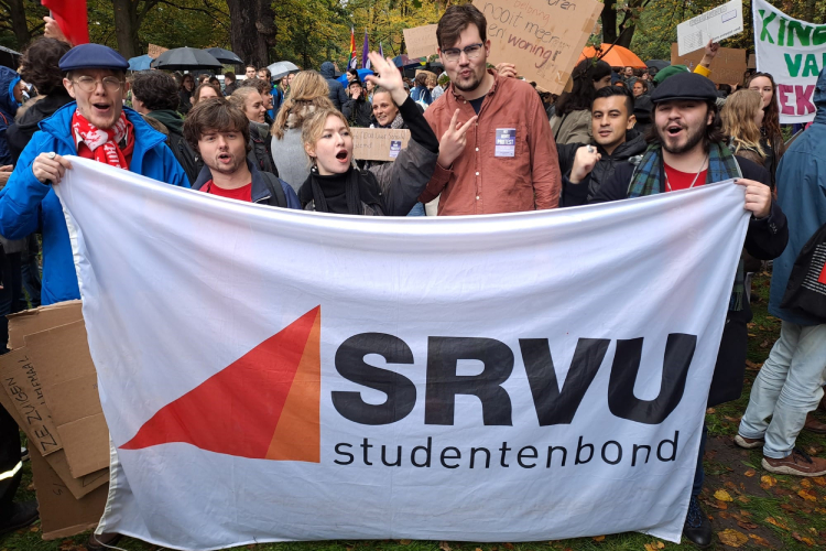 Voor het tijdelijke Tweede Kamergebouw verzamelen zich rond twee uur een paar honderd demonstranten. Piepjonge eerstejaars maar ook langstudeerders, millenials met torenhoge schulden en zelfs ‘bezorgde ouders’. Ze zien de rentestijging als de zoveelste klap in het gezicht van een generatie studenten “die al te vaak genaaid is”.