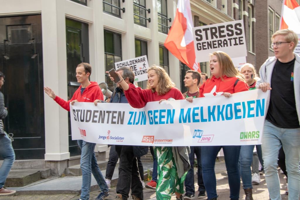 Het protest was georganiseerd door de jongerenpartijen van de SP, de PvdA en GroenLinks, en de studentenorganisaties ASVA en FNV Jong.