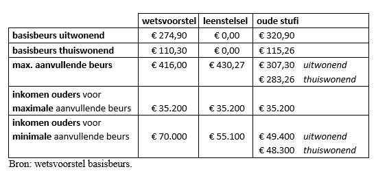 De bedragen verschillen enigszins van eerdere overzichten, maar het scheelt weinig. Alleen de maximale aanvullende beurs springt in het oog: daar komt 15 euro per maand bij, oftewel 180 euro per jaar.