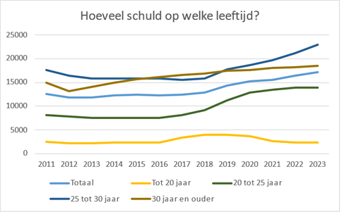 Begin 2023 hadden ruim 1,6 miljoen mensen een studieschuld. Sinds de invoering van het leenstelsel in 2015 is de gemiddelde schuld met 4.700 euro toegenomen tot 17,1 duizend euro.