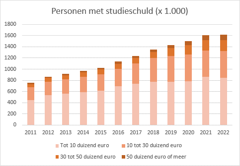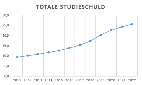 In zeven jaar tijd is de totale studieschuld in Nederland verdubbeld naar 25,7 miljard euro. Onder jongeren zijn studieschulden van 20 duizend euro inmiddels normaal.